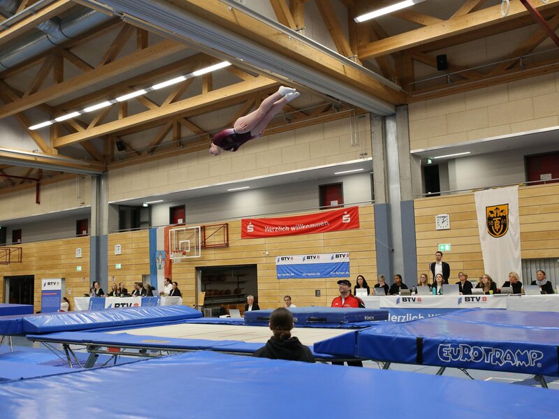 Am Samstag, den 21.03.2026, richtete der TV Burgkunstadt zwei große Trampolinwettkämpfe parallel aus: die Bayerische Einzelmeisterschaft und den Bayern-Cup. Zahlreiche Vereine aus ganz Bayern reisten an und boten den vielen Zuschauerinnen und Zuschauern einen Tag voller anspruchsvoller Übungen – teils mit den höchsten Schwierigkeiten des gesamten Wettkampftages, gezeigt unter anderem von Gabriela Stöhr mit 12,7 Pkt. und Philipp Kleidernigg mit 11,8 Pkt.